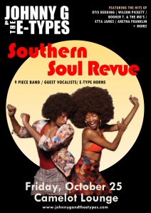 The Southern Soul Revue featuring “Soul Sista #1” Julz Di Sisto and Jon “The Soul Man” Elms performing soul classics including “Knock On Wood”, “Soul Man”, “Hold On I’m Coming” “In The Midnight Hour”, ‘RESPECT, Hard To Handle” and mo’.