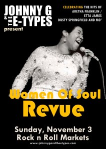 THE WOMEN OF SOUL REVUE featuring the sensational Sarina Jennings performing soul classics including “RESPECT”, “You Make Me Feel Like A Natural Woman”, “Chain Of Fools” “Son Of A Preacher Man”, ‘Think” Mr Big Stuff” and mo’…..Dance all night like it’s Memphis 1967.
